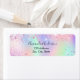 A trendy holographic background with unicorn colours and rainbow colours in pink, purple, mint green. Decorated with sparkles in pink and purple. Personalise and add your name and address. Perfect for a bridal shower, baby shower or birthday party invitations.