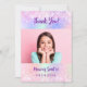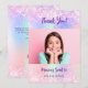 A pink, purple holographic background. Personalise and add your photo and thank you note. Purple text.