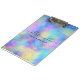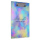 Brighten up your workspace with this stunning holographic opal clipboard, featuring a radiant sparkle and iridescent colours. Perfect for beauty professionals, students, or anyone who loves vibrant, eye-catching designs, this custom personalised clipboard is both practical and stylish. Add a touch of glam to your desk with this unique and colourful accessory.