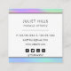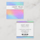 A trendy square business card featuring a holographic rainbow design. Your contact details, including phone, email, website and social media handle are on the reverse side. You can customise further to remove icons for social media that you do not use, and reposition icons if necessary.