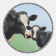 A mother black Holstein cow lovingly nuzzles her precious baby calf. Realistic artwork created from an original oil painting by equine and wildlife artist Crista S. Forest.