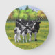 Holstein Cow & Cute Calf in Summer Pasture Round Clock