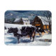 This magnet depicts my oil painting of some Holstein cows on Christmas Eve. Snow is falling as they stand in a snowy barn yard. Warm lights glow in the house and the barn and a church is seen far off in the distant hills.