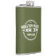 The flask itself is fine. It’s a cheap flask, obviously bought in bulk, however am prepared to overlook that. Given that it is a personalized item, I would have liked to have seen gift boxing instead of the generic packaging. Terrible printing, and/or quality. It’s a cheap, tacky vinyl. It is not cut straight and is also applied in a way that it is overhanging the bottom, causing the glue to catch on items and it will eventually roll and tear, damaging the wrap.