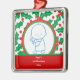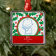 Holy Berry Baby’s 1st Christmas Customisable Ornament featuring an adorable baby boy in a green, red and holy berry patterned border and the baby’s name.