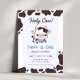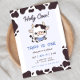 Get ready to celebrate with our Cow Birthday Invitation! Showcasing a baby cow on a blue background, this invitation is accented with cow spot borders. Customisable text allows you to personalise all the party details, making it the perfect choice for your little one's special day.