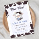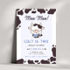 Get ready to celebrate with our Cow Birthday Invitation! Showcasing a baby cow on a blue background, this invitation is accented with cow spot borders. Customisable text allows you to personalise all the party details, making it the perfect choice for your little one's special day.