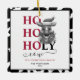 Holy Cow Christmas Photo Cowhide Pattern Ceramic Ornament. A funny, farm-themed holiday greeting featuring a cute cow wearing a Santa hat saying "ho ho holy cow it's Christmas again" on a black and white cowhide pattern. Add your own festive photo to the back of the ornament and send out jolly holiday greetings to your family and friends or keep it for your own Christmas tree. It's a lovely keepsake either way.