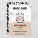 Adorable first year birthday invitation with a little cartoon cow. Illustrated and designed by Patricia Alvarez.