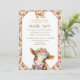 Pink Floral Cow Print Baby Shower Invitation. Design features a cute graphic of a cow with pink flower crown and brown cow print background. Sweet design for girls.