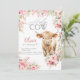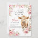 Holy Cow I'm One Highland Cow Pink Floral Birthday Invitation