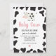 Holy Cow! Cute Cow with cow print, pink daisy and pink gingham back birthday party invitation.