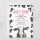 Holy Cow! Watercolor cow with cow print and pink plaid back birthday party invitation.