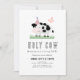 This cute and modern "holy cow" girl's 1st/first birthday party invitation features a cow with a pink party hat and a pink butterfly. The reverse side features a white background with black cow patterns. Personalise for your needs. You can find matching products at my store.