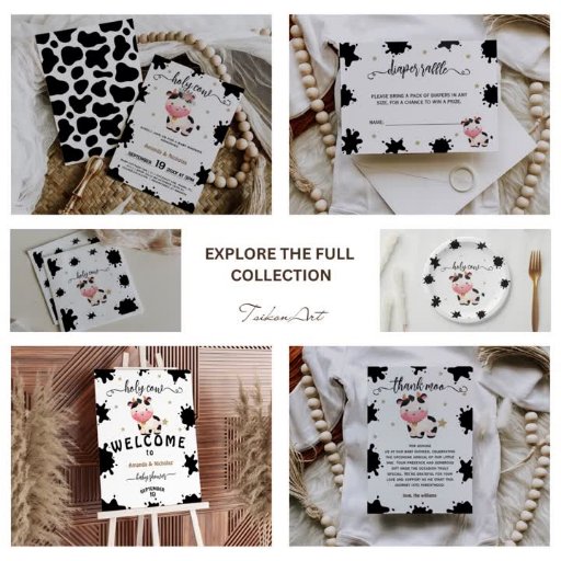 Boho watercolor minimalist cow themed gender neutral baby shower diaper raffle card, with cute holy cow, handwritten script, black splashes, gold glitter stars, in a rustic-modern- bohemian style. 🐮 Don't forget to explore the full collection.