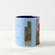 Mother of God with Child in her arms. Child is embracing the world. We belong to Him! Two alter candles set in the centre portion of the mug. Mug is 150z with darker blue inside. Start your day with them everyday!