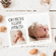 Welcome your little one to the world and share the joy of the season with our elegant Christmas birth announcement card with a little bit of humor. The text says "oh holy night, indeed." Featuring two adorable baby photos on the front and one on the back, this design combines modern minimal typography with festive charm. Personalize it with your baby’s name, birth date, weight, and length, plus a heartfelt thank-you message to friends and family. Perfect for sending holiday greetings while introducing your newest family member. Ideal for winter births, holiday baby showers, or as a keepsake for loved ones. Background is white.