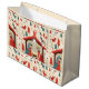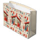 Religious and charming Christmas gift bag featuring a rustic, repeating pattern of the Nativity scene (Manger, Mary, Joseph, Baby Jesus) alongside shepherds, animals, and festive red and green accents. Ideal for church gifts, family presents, or anyone celebrating the true meaning of Christmas. Large, durable paper bag with handles.
