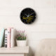 Wall Clock, 25.4 cm Round Black Wooden Frame