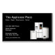 Home Appliance theme magnetic business cards designed with a graphic of a refrigerator, dishwasher, and hot water heater in the background. Created for businesses that sell, service, rent, and maintain home appliances or use this as a business card for a home warranty service as a magnet customers can keep handy.