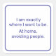 This sticker is a vibe. Use it to declare your preference for peaceful solitude. Dark blue text says, "I am exactly where I want to be. At home, avoiding people." Other available colours include hot pink, dark red, black, and dark green.