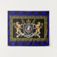 This Home wall tapestry is a stunning piece to have in your home. Featuring framed lion supporters, on either side of the clan badge, crossed basket hilt claymore swords and a golden thistle. Tapestries were hung on castle walls to keep the warm in from the cold stone behind them. Comes in all sizes.