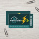 Cover features a green layered design with a creative home electrician wiring signage. The electric plug draws power from your prestigious name on the right. Near the base is the contact details.