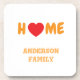 the design shows a home text at the top and a customisable family name at the bottom with white background. this cute design will be perfect for any home.