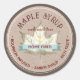 Kraft label with an earth-toned border. Product name in a decorative grunge font. Sugar maple leaf with your name or business on a pale teal banner. Your location or desired text on bottom perimeter of label in curved text. Great for Maple Syrup, Maple Sugar, Maple coated nuts, etc.