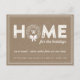 'Home For The Holidays', Family Monogram Within A Wreath, On Brown Kraft Paper Background, Holiday Moving Announcement Postcard.