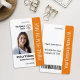 Easily personalise this blue professional healthcare employee photo ID orange badge with your custom details.