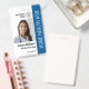 Easily personalise this blue professional healthcare employee photo ID blue badge with your custom details.