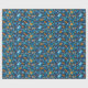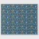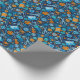 Wrapping paper featuring lovely pattern, sewing supplies - scissors, buttons, spools of thread, needles - scattered on dark blue background. This design, elaborated from handmade paper collage, makes a great gifts for crafters and sewers.