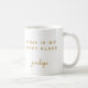 Simple and modern white and gold colour "home is my happy place" typography mug with personalised name.