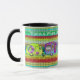 Colourful faux ceramic tile background with 4 different coloured caravans. This cup can be customised to fit your taste. You can change the filter and use your own quotes.