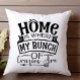 Fun pillow with "Home is Where My Bunch of Crazies Are" in black on the front and fun floral back.