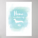 Cute turqouise Home is where my dachshund is calligraphy poster