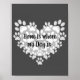 Home is where my dog is Quote with Paw Prints