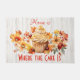 Welcome your guests with a sweet and playful touch using this 'Home is Where the Cake Is' doormat. Featuring a delightful cupcake surrounded by vibrant fall flowers and leaves, this charming doormat adds a cosy and inviting vibe to your home. Perfect for the fall season, Thanksgiving, or any time you want to showcase your love for cake and a warm, welcoming home. Add a dash of sweetness and seasonal charm to your front door with this beautiful mat.
