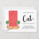 This moving announcement card features a red door and pot plants with kitty paw prints.