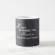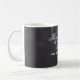 A personalised coffee mug that features the family's last name written on a chalkboard textured background along with the text "Home Is Where The Heart Is". This custom mug makes a great gift for any occasion.