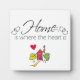 Plaque with the phrase "Home is where the heart is" on it, with a cute little house & heart below. Words have heart outlines on either side.