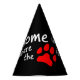 A wordplay with the quote "Home is where the heart is", this black party hat has the words "Home is where the [paw print picture] is", with the paw print picture in red, representing the "heart". The must-have for pet parties. Make it a partyware set with the same design on paper plates, paper cups, and paper napkins! This party hat is also available in white.