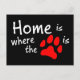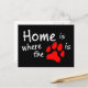 A wordplay with the quote "Home is where the heart is", this black postcard has the words "Home is where the [paw print picture] is", with the paw print picture in red, representing the "heart". The perfect gift for pet lovers.
