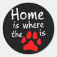 A wordplay with the quote "Home is where the heart is", this set of round stickers has the words "Home is where the [paw print picture] is", with the paw print picture in red, representing the "heart". The perfect gift for pet lovers.