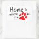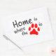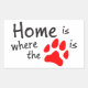 A wordplay with the quote "Home is where the heart is", this set of rectangle stickers has the words "Home is where the [paw print picture] is", with the paw print picture in red, representing the "heart". The perfect gift for pet lovers.
