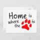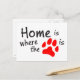 A wordplay with the quote "Home is where the heart is", this white postcard has the words "Home is where the [paw print picture] is", with the paw print picture in red, representing the "heart". The perfect gift for pet lovers.