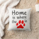 A wordplay with the quote "Home is where the heart is", this white throw pillow has the words "Home is where the [paw print picture] is", with the paw print picture in red, representing the "heart". The perfect gift for pet lovers. Also has a black version! Check out the store for more.