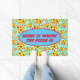 Colourful and trendy aqua blue doormat printed all over with slices of pepperoni pizza, with the phrase HOME IS WHERE THE PIZZA IS. Perfect for pizza lovers, pizza chefs and pizzeria restaurant decor