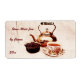 Home made delicious jam canning label featuring a copper tea+pot, a cup of tea and a glass dish with jam